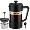 French Press - Coffee Maker & Tea Maker with 3 Part Superior Filtration 600 ML, 304 Stainless Steel Brewing Coffee Machines German Heat-Resistant Borosilicate Glass - Black