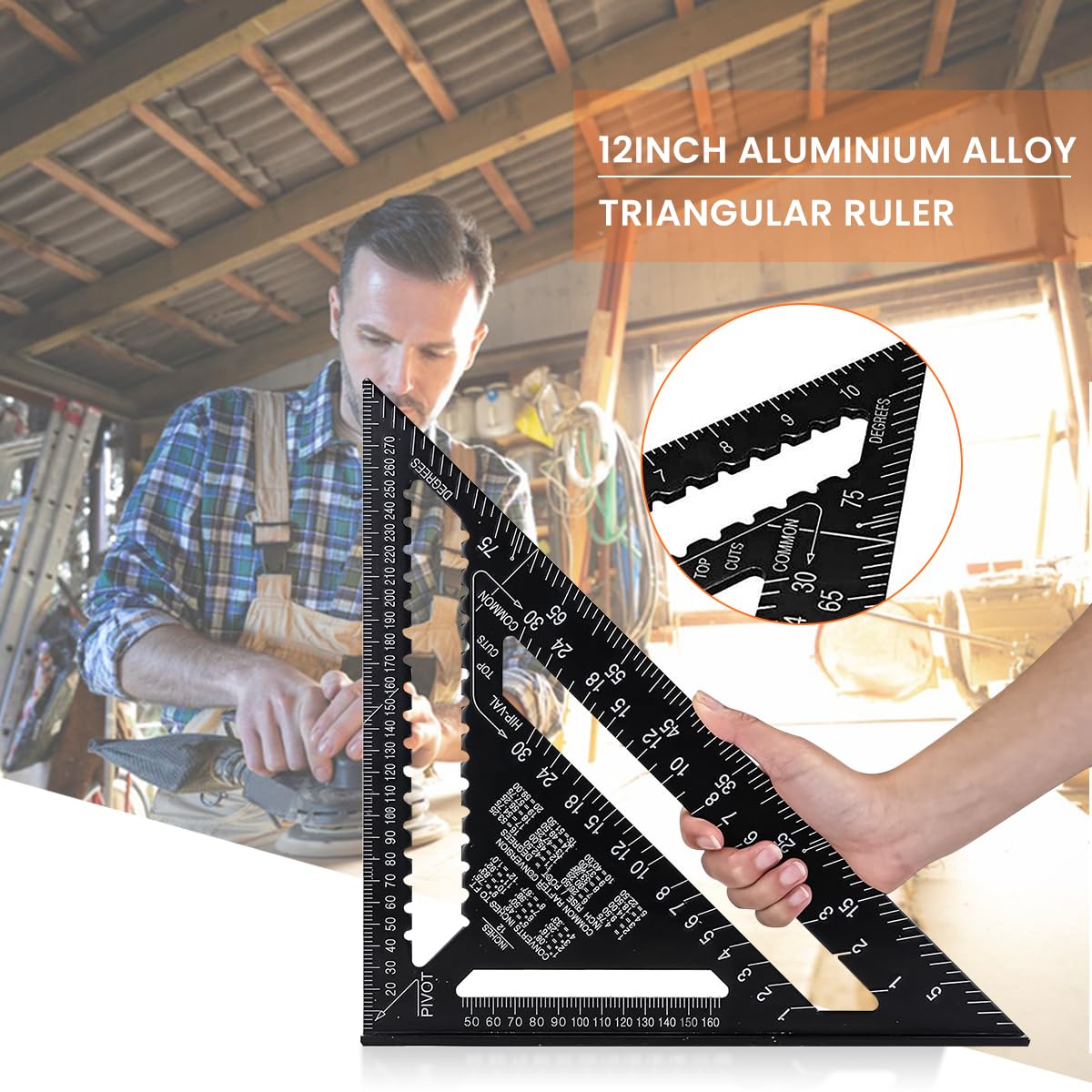 HASTHIP Triangle Ruler for Woodworking with Double Scale Laser Marks and Aluminum Alloy Construction | 12 Inch Metric Measuring Tool