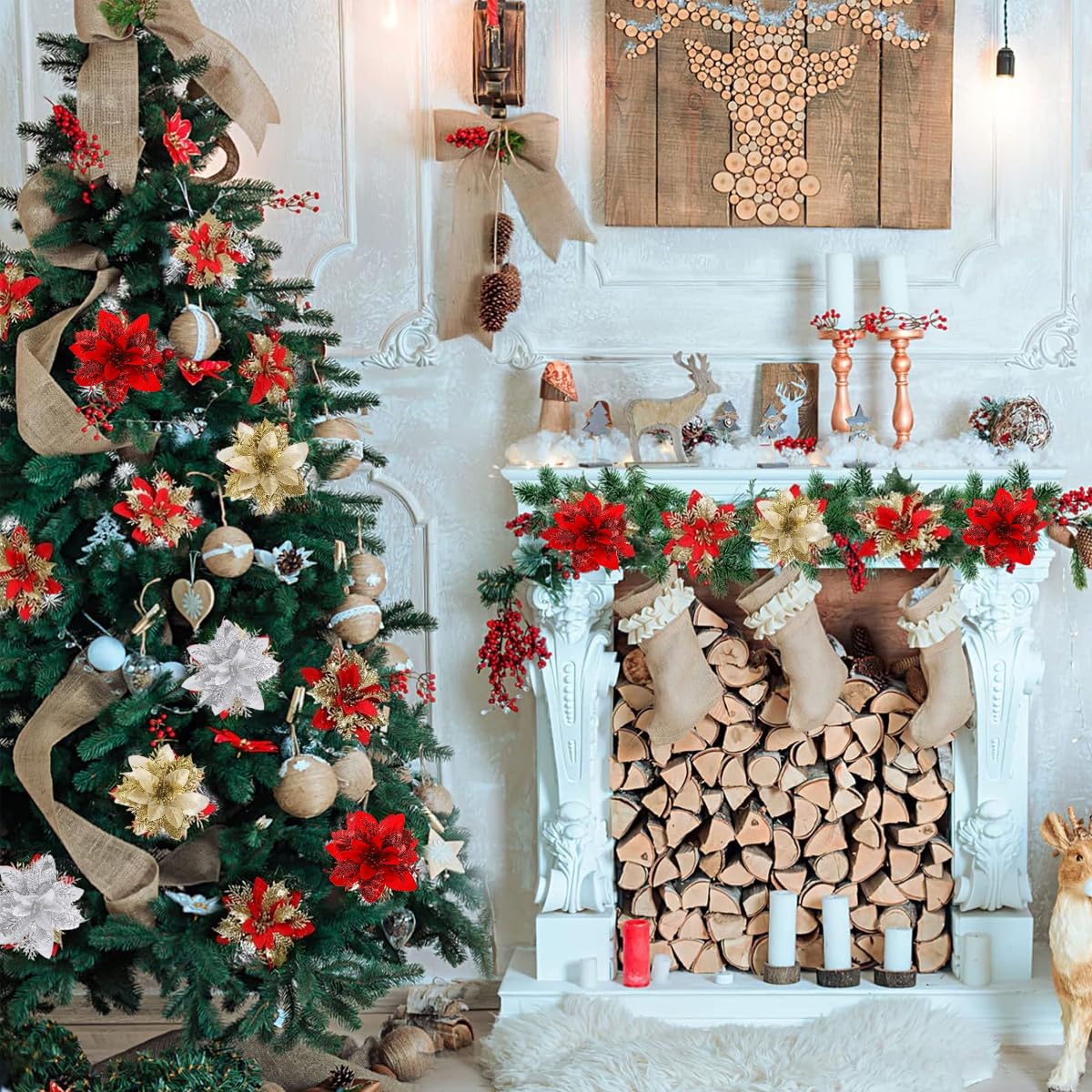 - Each flower measures approximately 5.5 inches, suitable for wreaths, garlands, or Christmas trees.