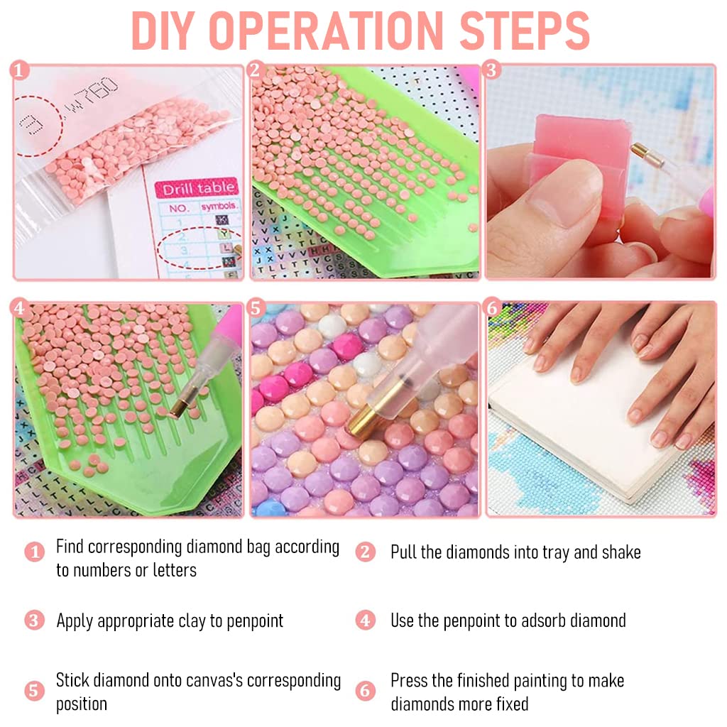 - The 30 x 40 cm full drill canvas is covered completely with round resin diamonds for a vivid decorative effect.