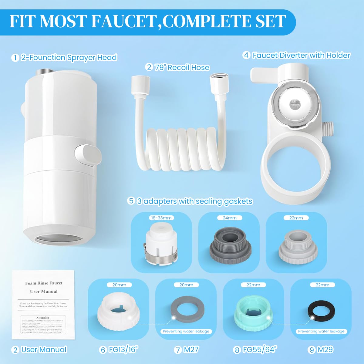 - Features a dual sprayer head with 360-degree rotation for complete water coverage and flexible cleaning performance.