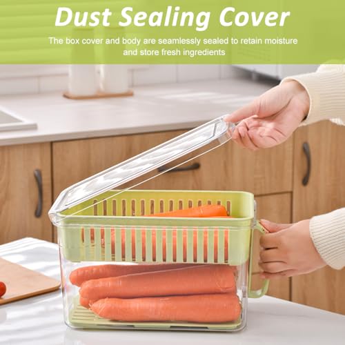 - DOUBLE-LAYER DESIGN & DRAINING TRAY: The double-layer structure features a built-in drain basket and a utility base container, which come with a removable draining tray. This clever design allows excess liquid to drain away, preventing sogginess and keeping your vegetables, pickles, and deli items fresh. Perfect for washing and drying food directly in the container.