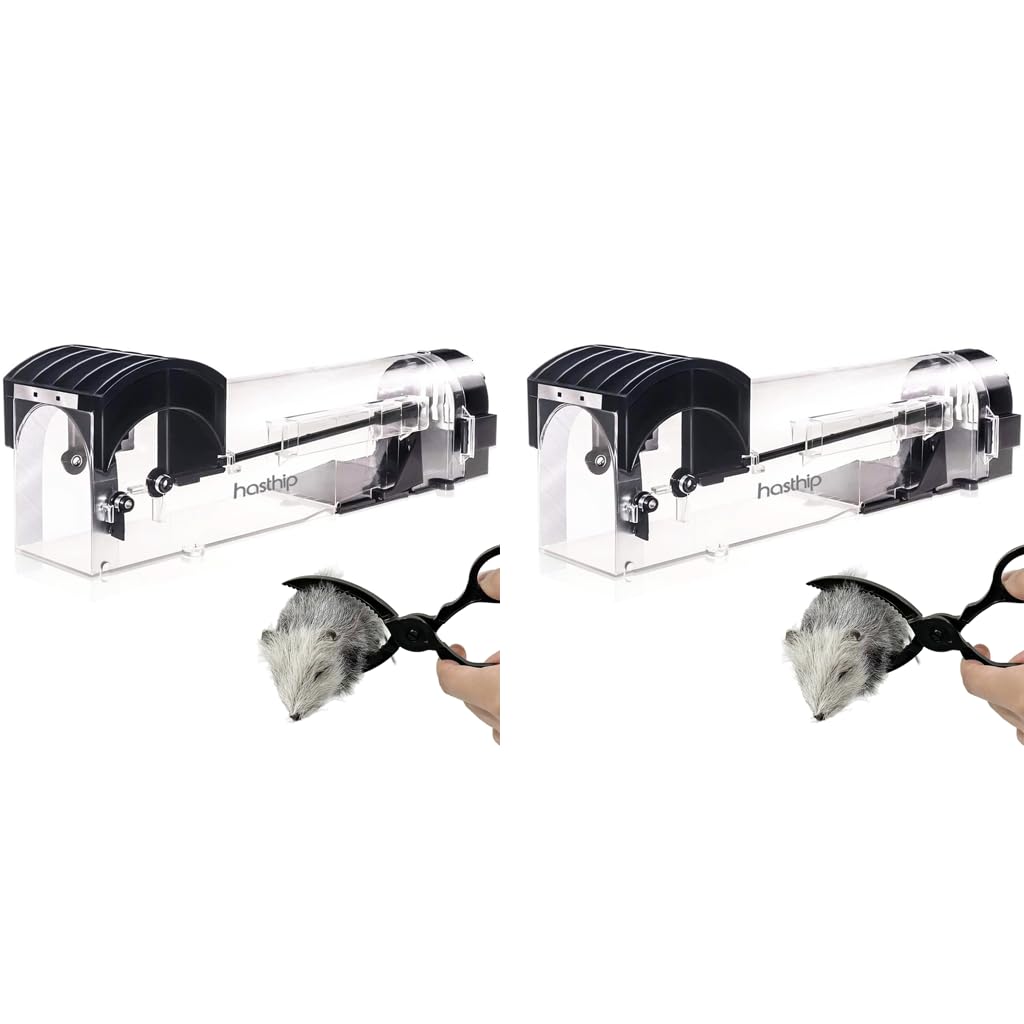 HASTHIP Mouse Trap Snap Combo 12.6 Inches Transparent Rat Quick Response Live Catcher Humane Catch-and-Release Reusable for Kitchen 2PCS offers a practical and versatile solution for rodent control in residential areas. This comprehensive mouse catching solution combines a live trap for humane catch-and-release with a quick snap trap designed for instant response in more severe infestations. The transparent structure helps users monitor activity easily, while its reusable design provides cost-effective and eco-friendly use. Ideal for kitchens, offices, and other indoor spaces, this HASTHIP combo set helps maintain a cleaner and rodent-free environment through reliable and humane methods.