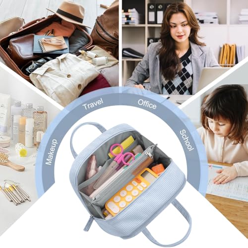 HASTHIP® Large Pencil Pouch for Girls Boys,Extra Big Case with 5 Compartments,Zippered Organizer for Women Cute Blue Aesthetic School Supplies Teens
