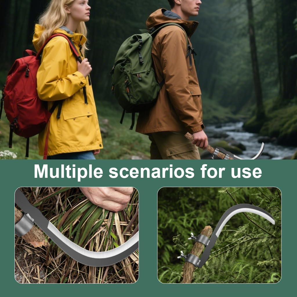 HASTHIP Handheld Gardening Tool for Weeding and Pruning with 6.7 in Curved Blade featuring Dual Mounting Collars