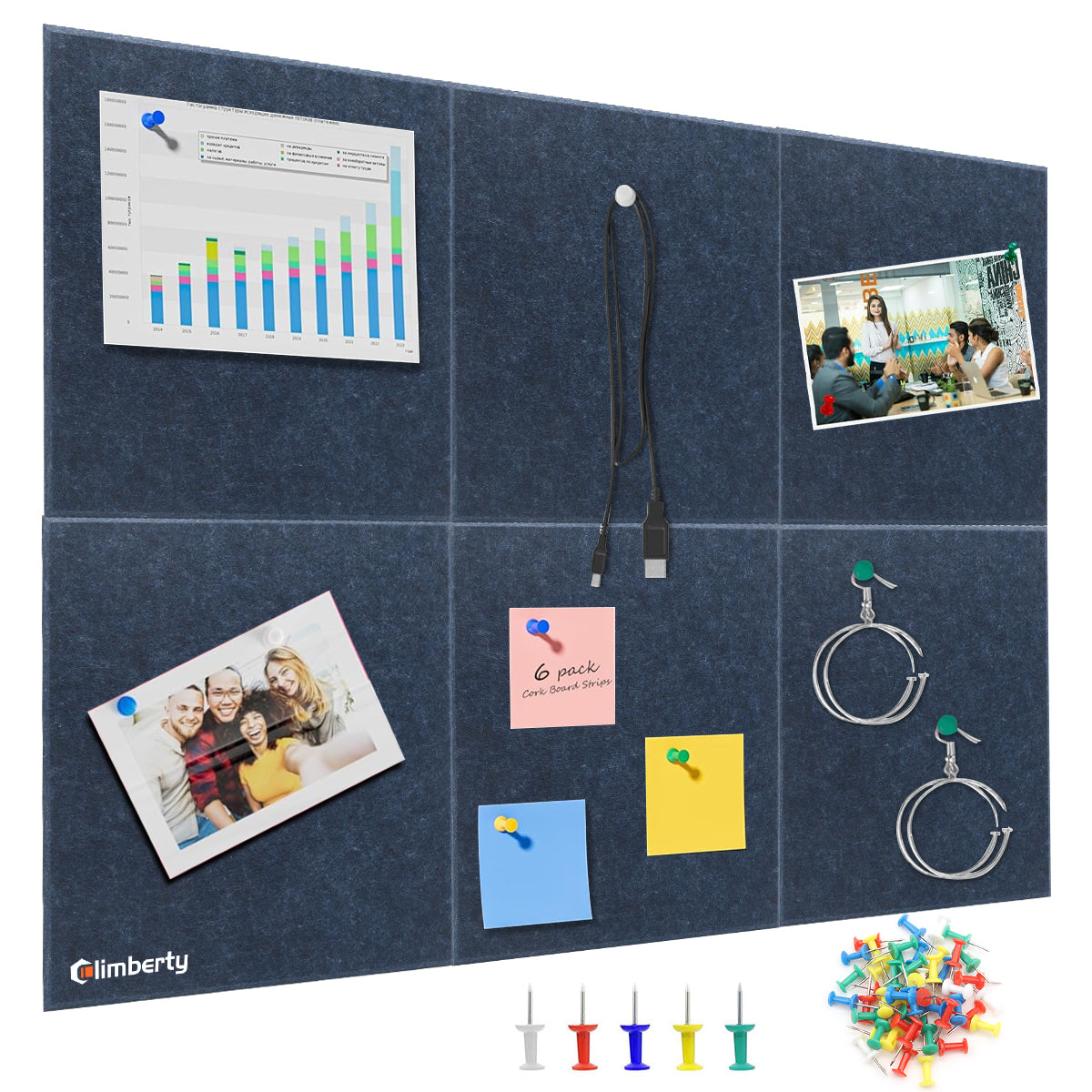 HASTHIP® Cork Board Alternative - 47"x35" 6 Pack Felt Wall Tiles with Safe Removable Adhesive Tabs