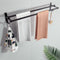 15.7 Inch Aluminum Bathroom Towel Rack Towel Rod Towel Hanger Towel Bar Bath Accessories, Double-Pole Towel Stand with Hooks, Rustproof Towel Storage Wall Mount for Bathroom Lavatory (Black)