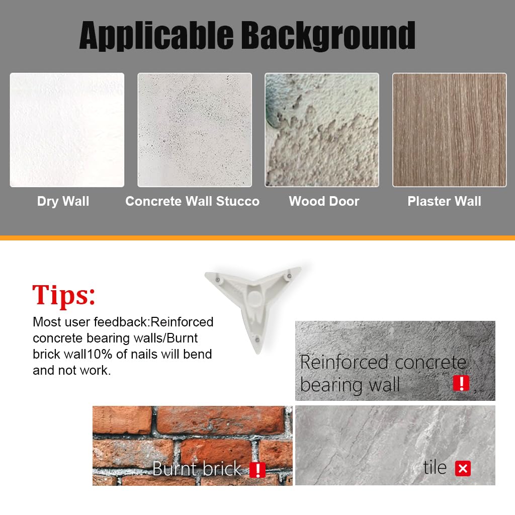 - Wall-friendly nails minimize marks and protect wall surfaces during installation.