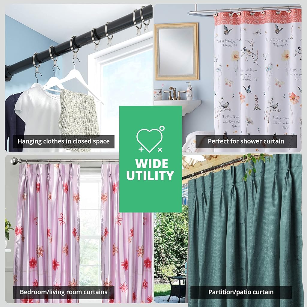 - [Durable and Rustproof]--Including 12pcs curtain rings. Constructed with durable metal with rustproof coating ensures longer durability. The sturdy metal has a better load-bearing capacity, can hang both lightweight material and heavy-duty drape.