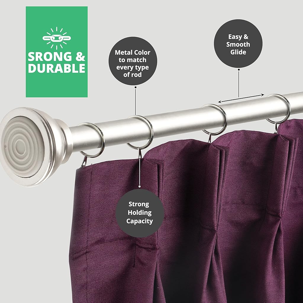 - [Smooth Sliding and Lustrous Finish]--The flawless, no-burr, refined surface of the metal curtain rings ensures smooth gliding and effortless slithering along the rod, thus, eliminating the ripping, tugging, and pulling of the curtains.