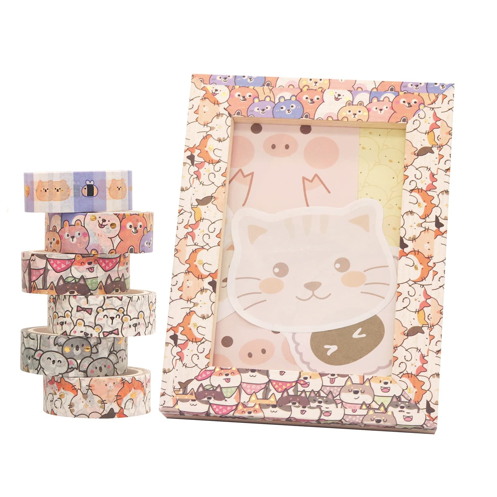 HASTHIP 18 Rolls Cute Pets Washi Tape Set features decorative masking tapes with gold embellishment, designed for arts, DIY crafts, bullet journals, planners, and scrapbooks. The set includes 18 rolls in two widths, each printed with adorable cartoon patterns that add vibrant color to creative projects. Made from quality removable material, the tape can be easily torn by hand, repositioned, and reused without damaging surfaces. Suitable for notebooks, memos, photo albums, and travel journals, it enhances personal creativity while maintaining neat application. Ideal for journaling or pen pal crafts, this set from HASTHIP provides a playful and practical option for decorative and organizational use across a wide range of paper projects.
