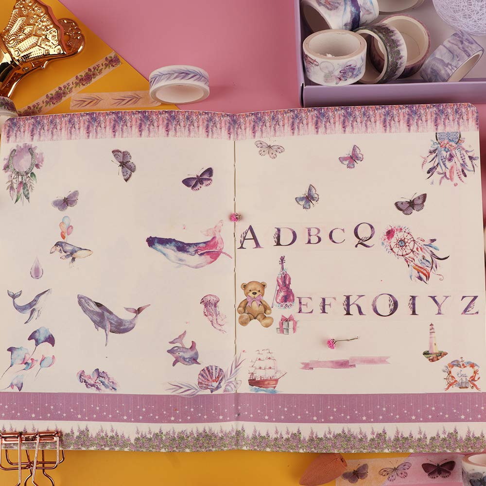 HASTHIP 20 Rolls Washi Tape Set offers vintage-style masking tape made from Japanese textured paper that is both waterproof and adhesive. Each set includes 20 rolls in three practical sizes—10mm, 15mm, and 30mm, with 2 meters per roll—providing versatility for creative projects. Inspired by ocean life, the washi tapes feature colorful marine patterns including starfish, shells, whales, jellyfish, and waves, reflecting a lively and natural aesthetic. The durable yet easy-to-tear construction makes them suitable for bullet journals, planners, scrapbooking, and decorative art. Reliable in texture and design, HASTHIP combines practicality with creativity, allowing users to enhance their craft projects with consistent quality.