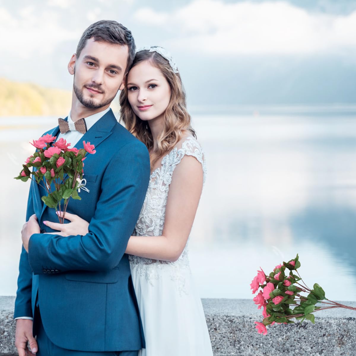 - Each set includes two layered flower bouquets measuring approximately 33 cm in total length.