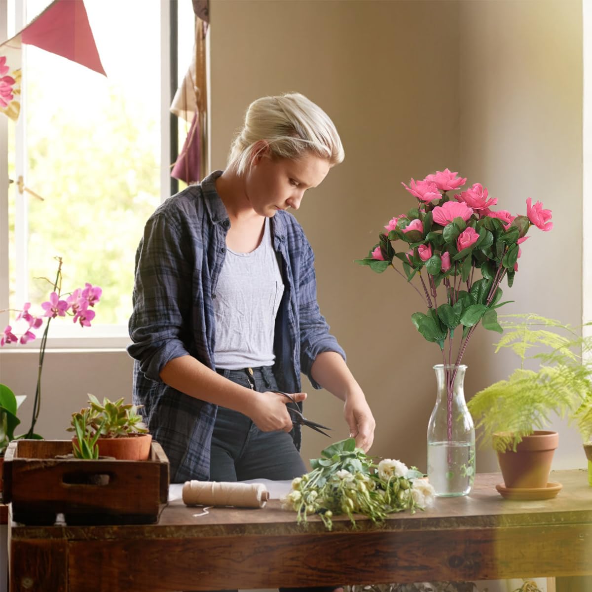 - Maintenance-free artificial flowers remain fresh and attractive throughout the year.