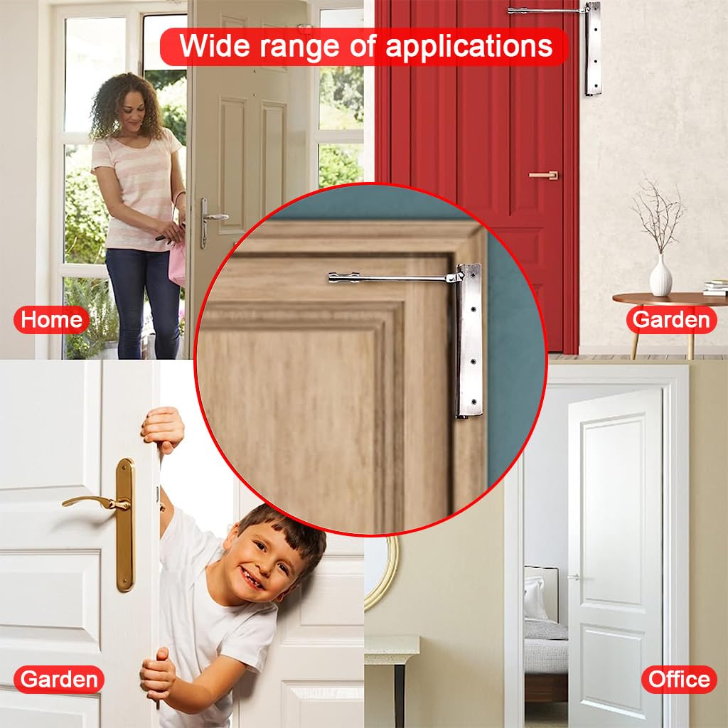 HASTHIP 2 Pack Door Closer is a spring-loaded automatic door closer made of durable stainless steel for smooth and reliable door operation in homes, offices, or hotels. Designed for both wooden doors and aluminum doors, it helps reduce noise and protects doors from damage with adjustable closing tension. The surface-mounted structure includes a folding spring arm and complete accessories such as screws and Allen keys for easy assembly. Its adjustable closing speed allows smooth door movement and prevents slamming, enhancing comfort and safety. With broad application across residential and commercial settings, HASTHIP demonstrates practical engineering that ensures dependable performance and long-lasting usability.