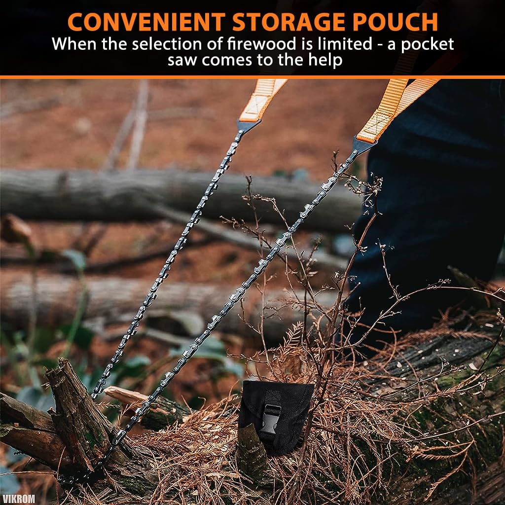 HASTHIP® 24" Pocket Chainsaw with Grips Folding Pull Saw with Storage Pouch Manganese Steel Hand Saw Hand Saw Portable Hand Saw for Cutting Branches, Outdoor Survival Gear Camping Gadget