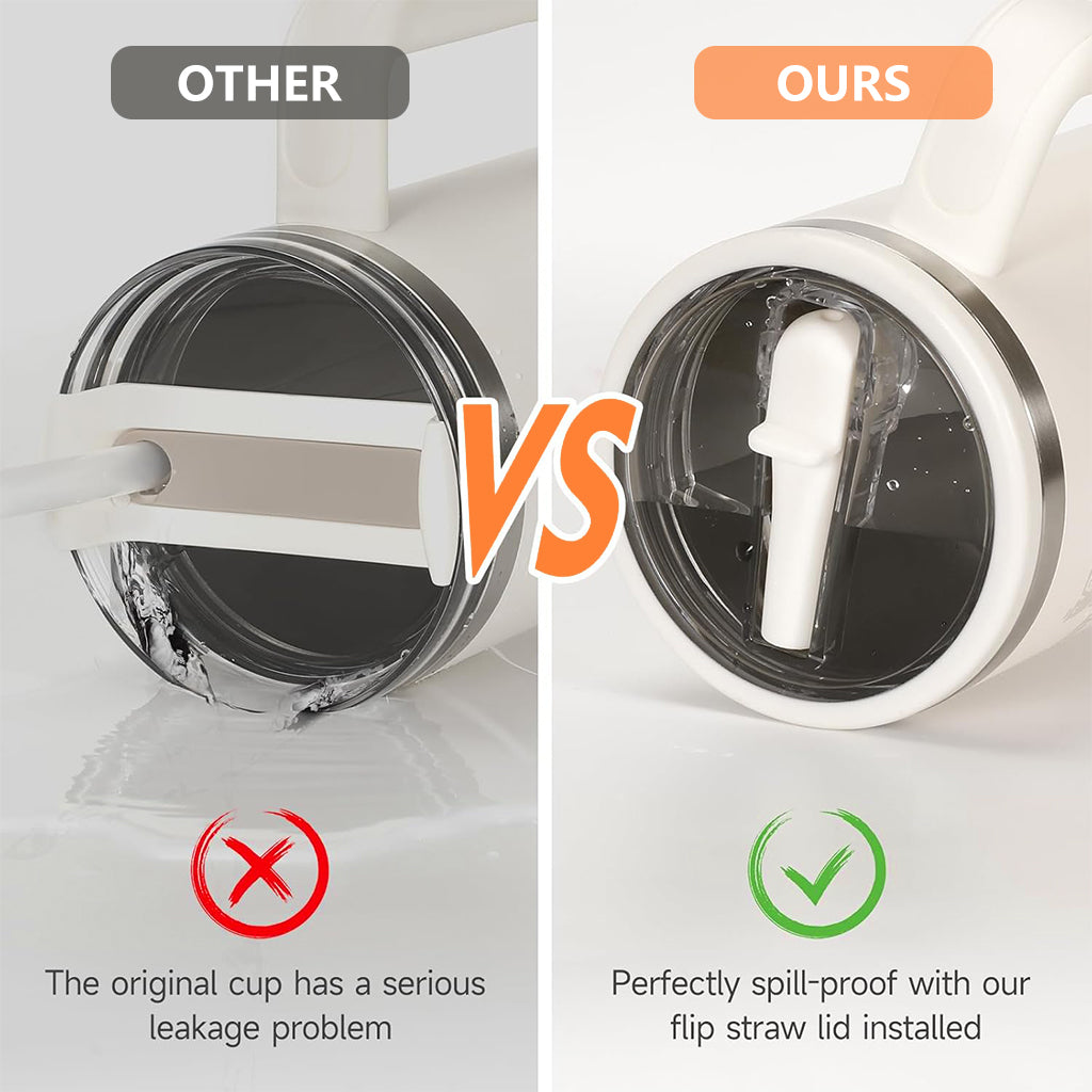 - PERFECT COMPATIBILITY: 40 oz spill proof replaceable tumbler flip straw lid compatible with 40 oz Stanley Quencher H2.0 tumbler.
