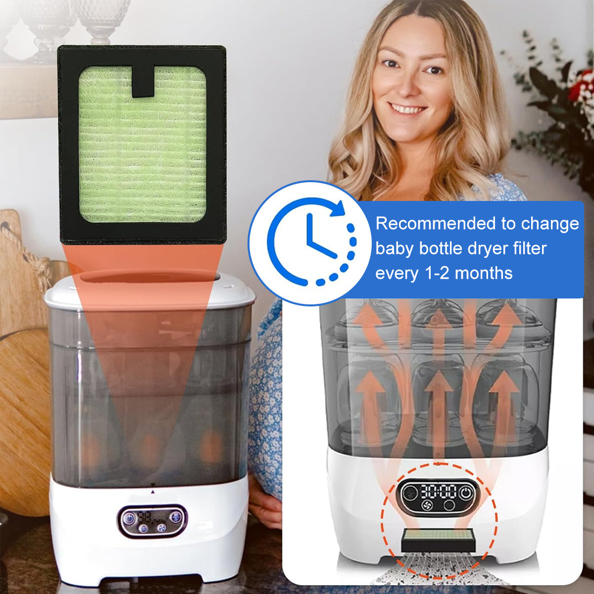 - OPTIMAL FILTRATION EFFICIENCY: Specifically designed to be compatible with Baby Brezza's advanced drying system, these HEPA air filters are built to capture up to 99.97% of airborne particles, including allergens, dust, and bacteria. They keep your baby's bottles and accessories ultra-clean, providing you with absolute peace of mind during feeding times