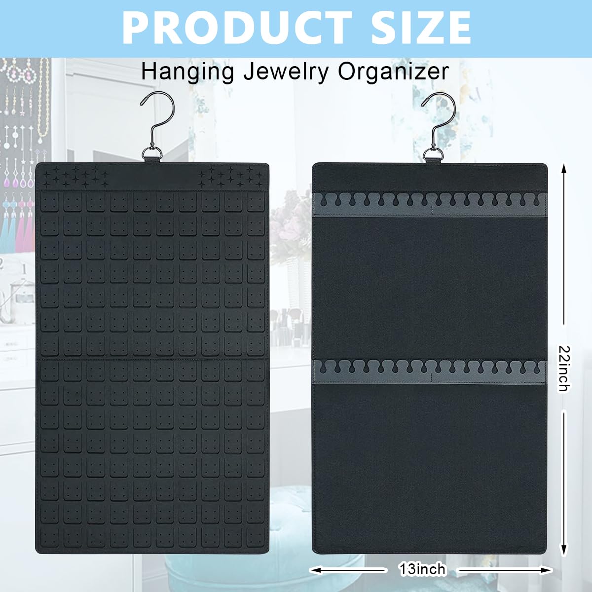 HASTHIP Hanging Jewellery Organizer for Closet and Wall with Dual Sides | Holds 300 Pairs and 30 Necklaces Black