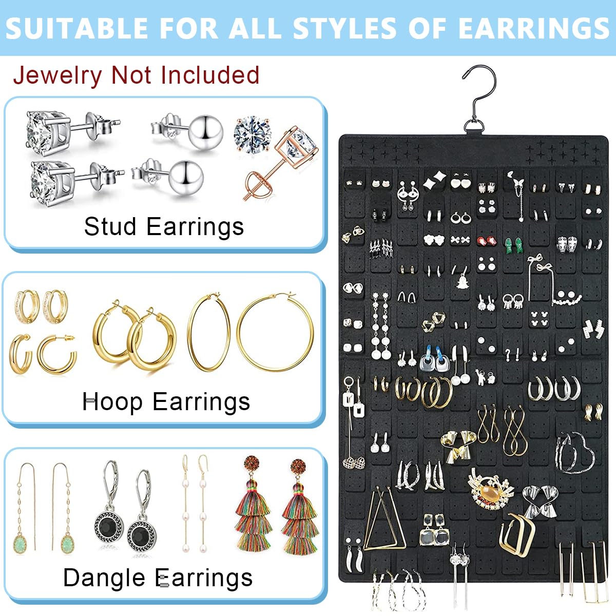- Dual-sided design accommodates up to 300 pairs of earrings and 30 necklaces.
