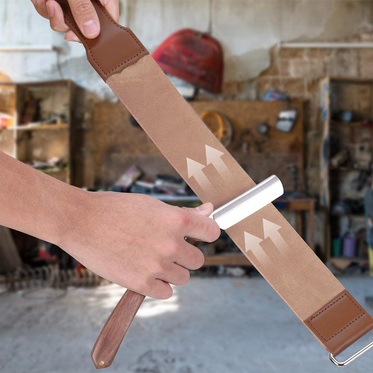 • The leather strop and angle guide ensure a precise angle and polished finish on sharpened blades.