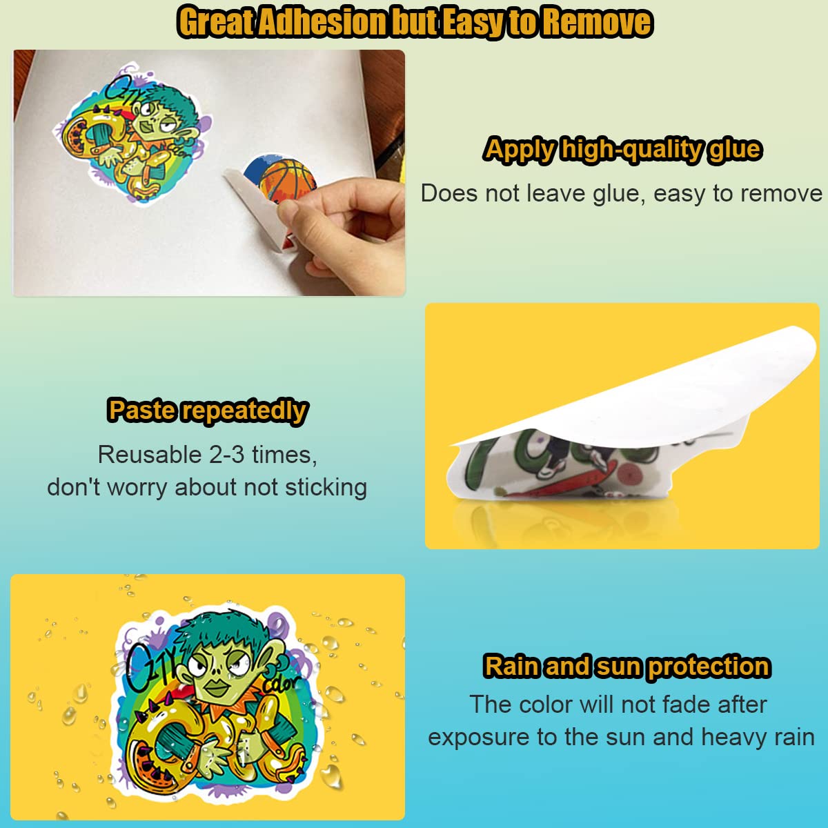 - Ideal for DIY decoration of laptops, books, skateboards, guitars, scrapbooks, and walls.