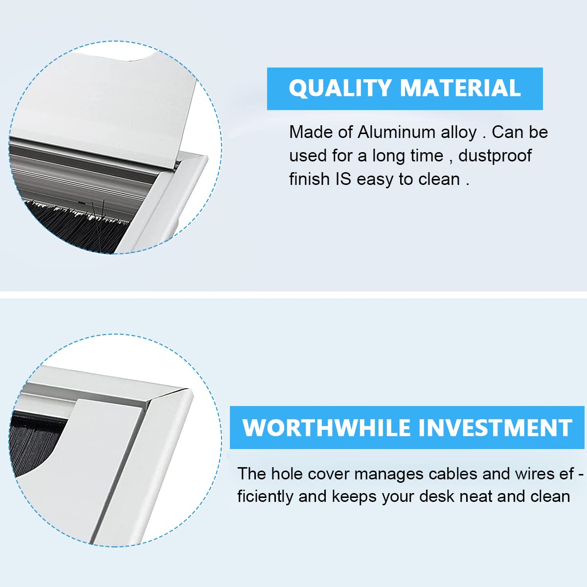 HASTHIP Rectangular Wire Cable Hole Cover with Dust-Proof Brush is a durable aluminum cable organizer designed for efficient wire management on office and computer desks. Measuring 280mm by 80mm, this desk hole cap fits a wide variety of cable types such as power cords, network cables, and PC wires, keeping workspaces tidy and organized. Its sturdy aluminum material ensures long-lasting performance while maintaining a sleek silver appearance that blends with most desk styles. The flip-open lid allows easy cable access, and the integrated brush design prevents dust accumulation and cable damage. Ideal for offices and workstations, this HASTHIP cable cover helps maintain a clean, professional, and organized desktop environment.