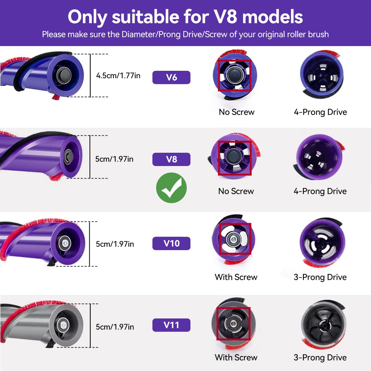 - Precisely engineered soft roller head fits the Dyson V8 vacuum with dimensions of 238x50mm.