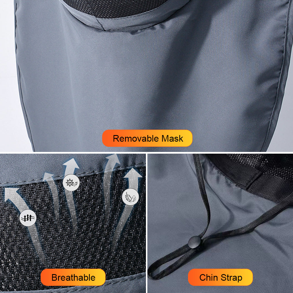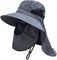 HASTHIP® Sun Hat Wide Brim Hat Hiking Hat UV-Protection Sun Hat with Neck Flap & Removable Face Cover Outdoor Unisex Sun Hat with Chin Strap, Breathable Sun Hat for Hiking, Fishing, Gardening, Grey